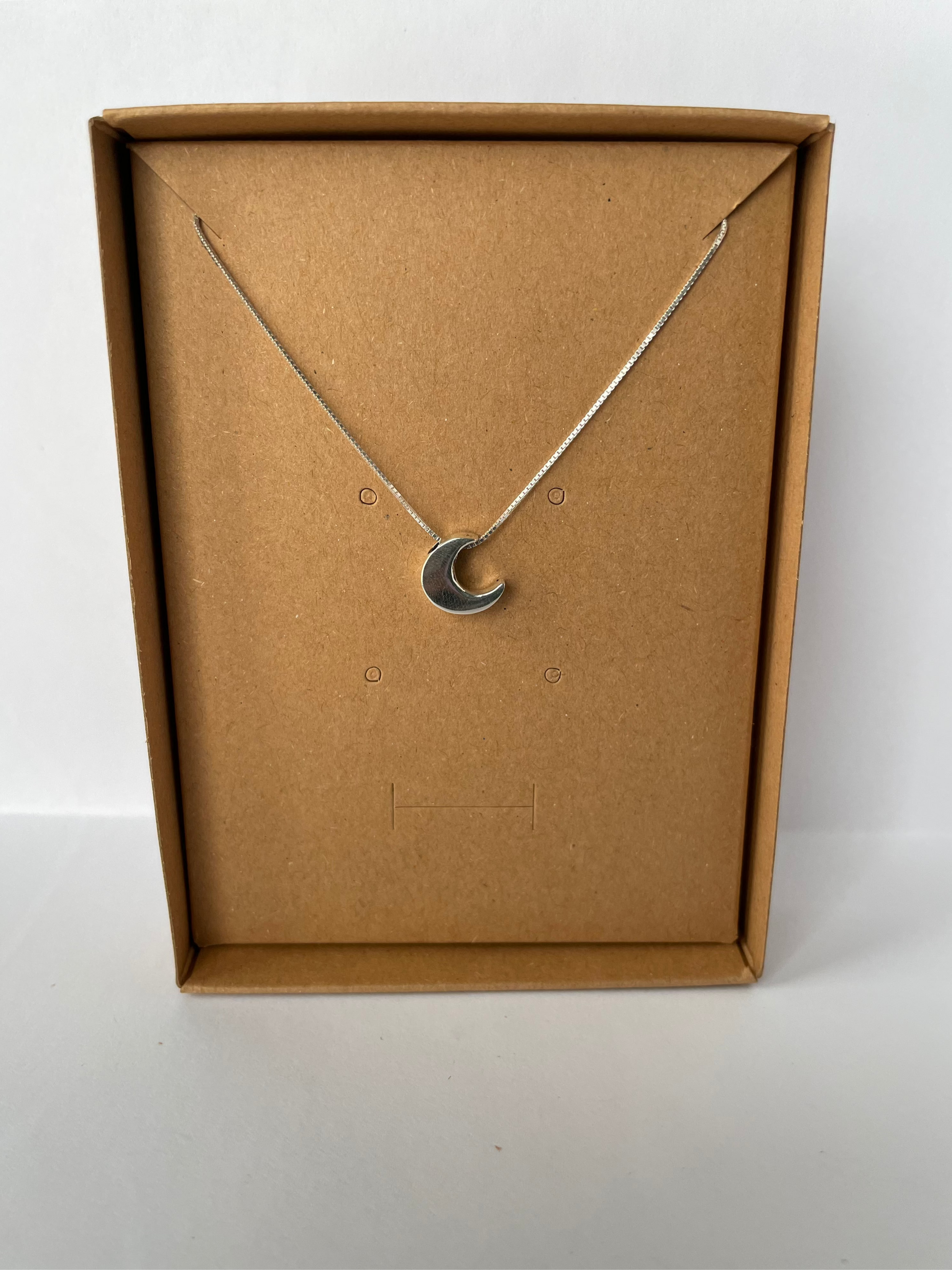 Add a touch of whimsy to your attire with the Sliver Moon necklace. Crafted from dazzling sterling silver, this celestial piece is perfect for any moon lover. Shine bright like the silver moon with this playful and unique necklace. (Moon-y puns not included.)